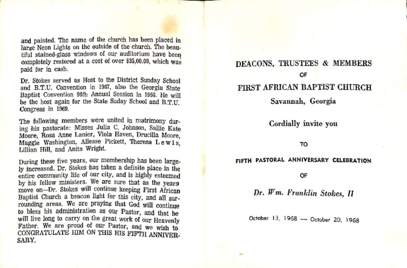 Records donated by congregants from the First African Baptist Church, Savannah, Georgia. Records depict information about the church and its congregants.